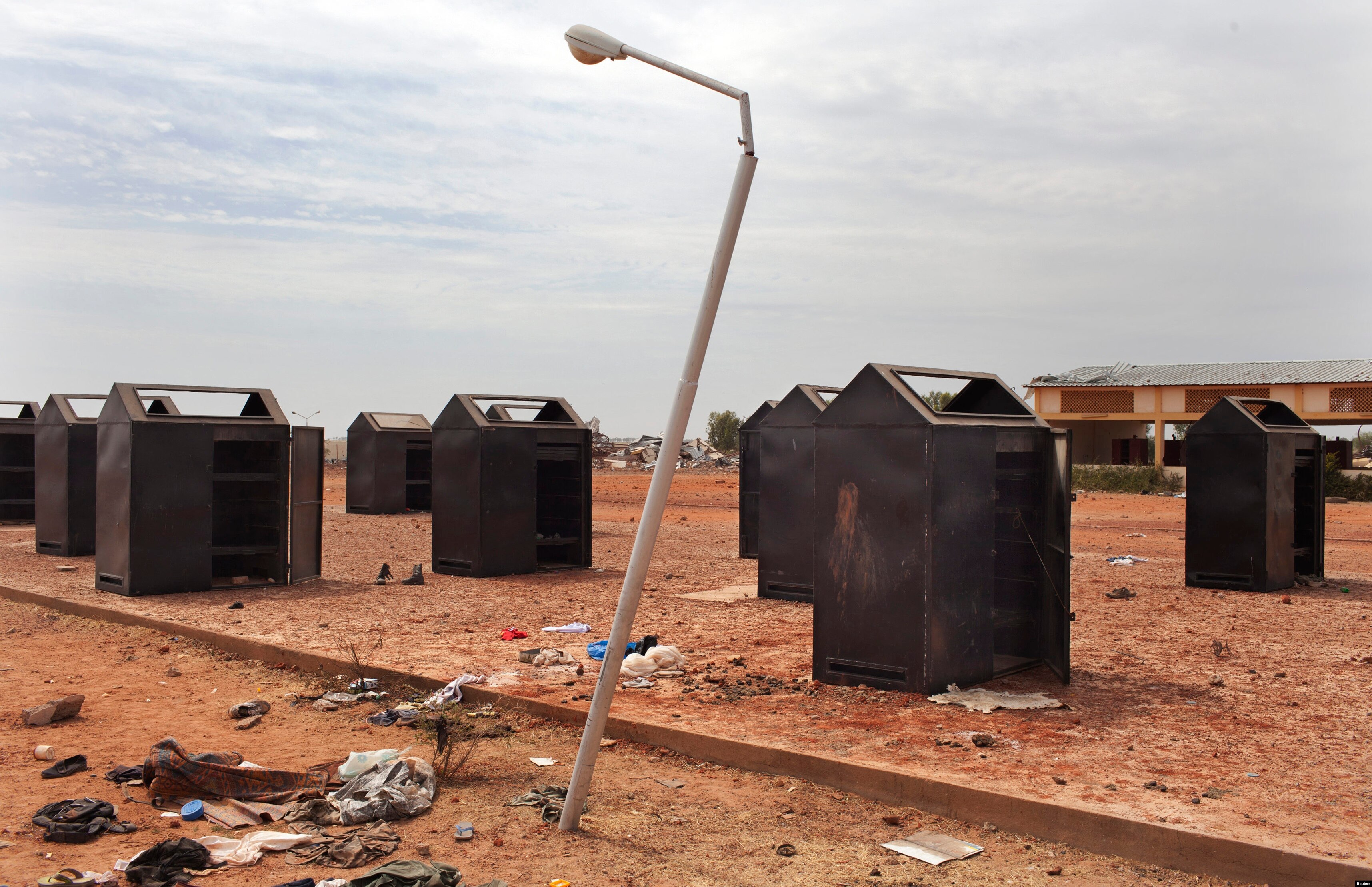 Storage lockers at a fish market used as a military base by al-Qaida-linked militants are seen in Konna, Mali, January 27, 2013.
