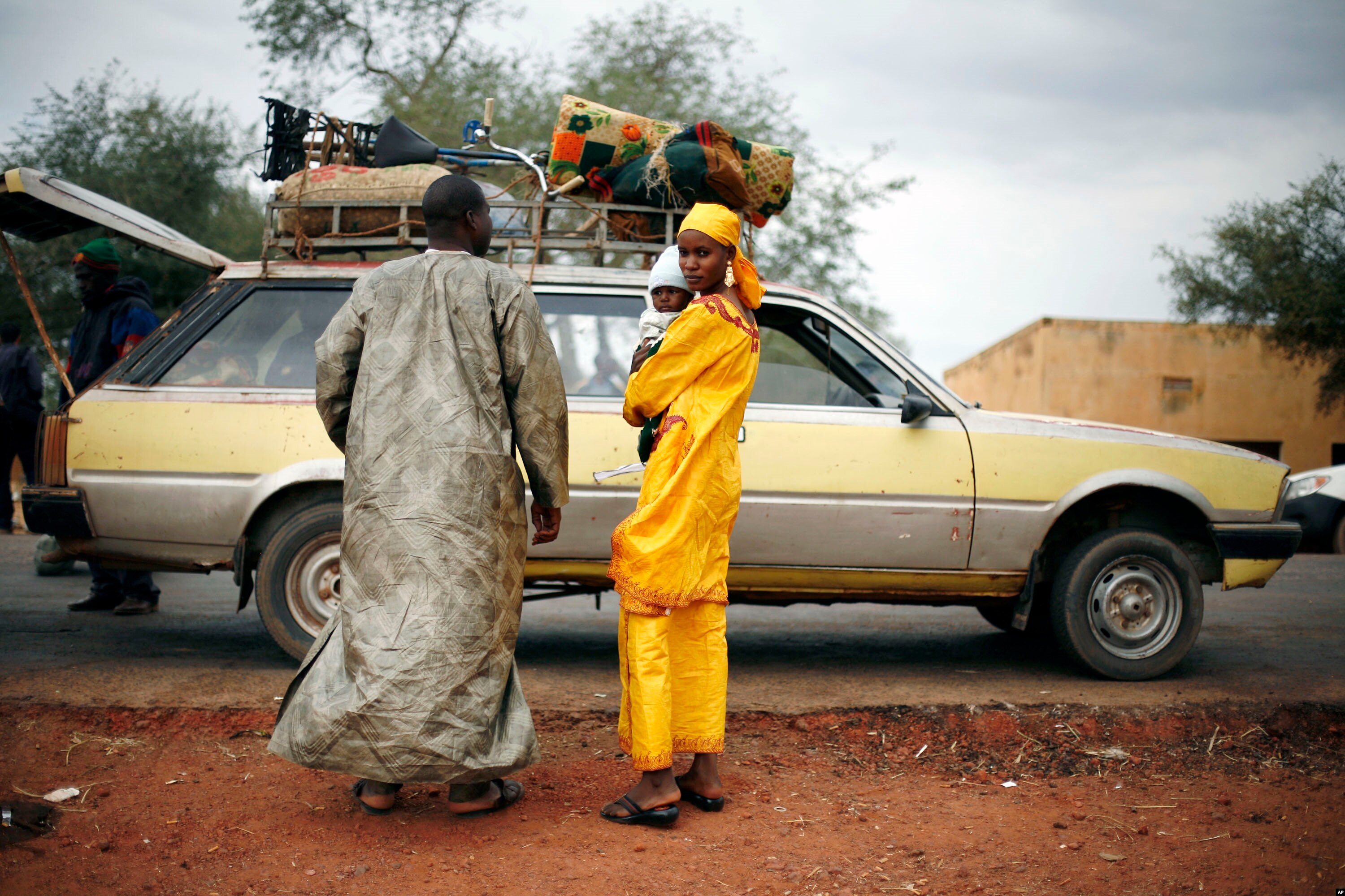 A Malian family's taxi is searched at a checkpoint on the Gao road outside Sevare, 620 kilometers north of Mali's capital Bamako, January 27, 2013.