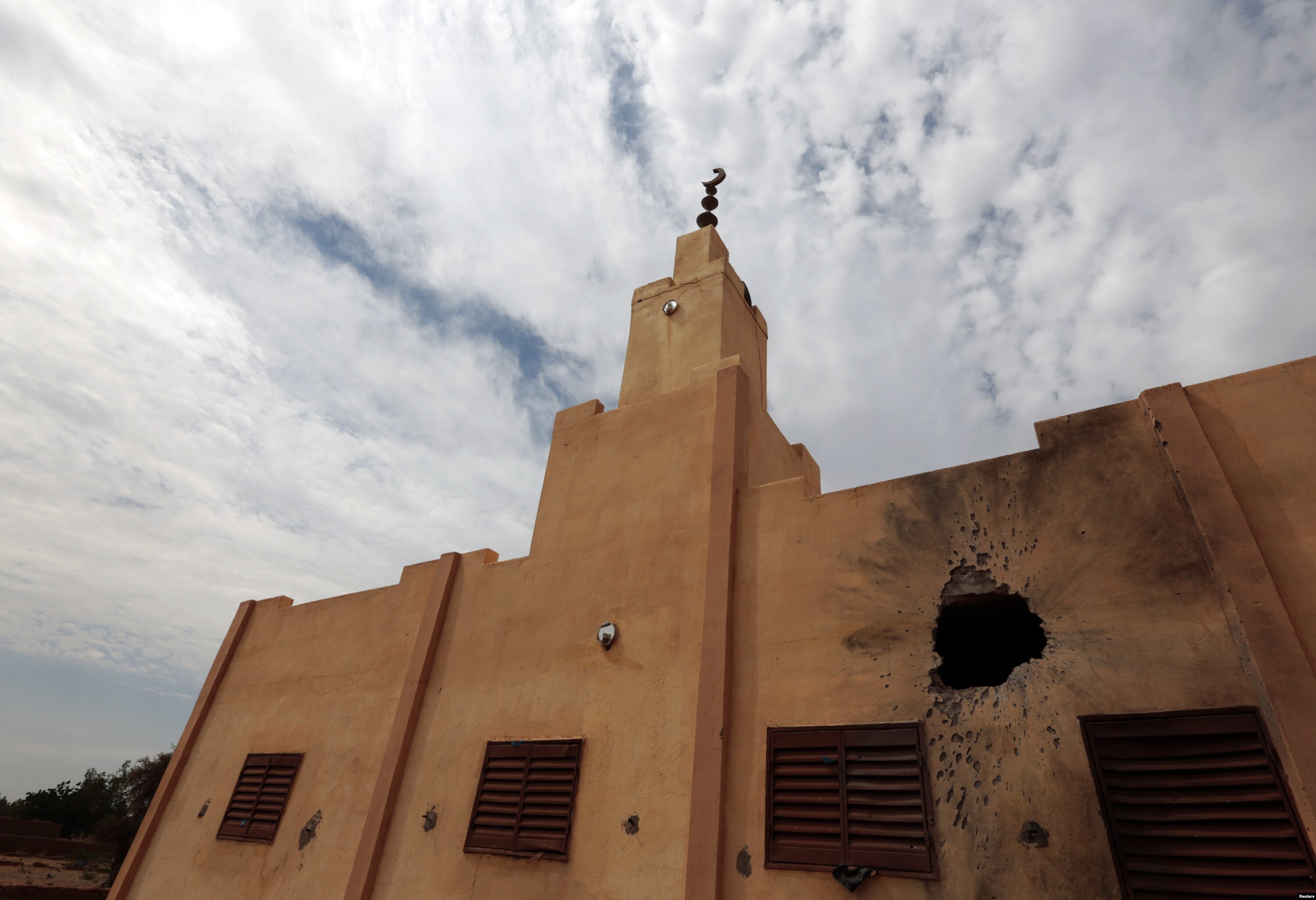 A mosque damaged in fighting between French-backed Malian troops and al-Qaida-linked militants is seen in the recently liberated town of Konna, Mali, January 27, 2013.