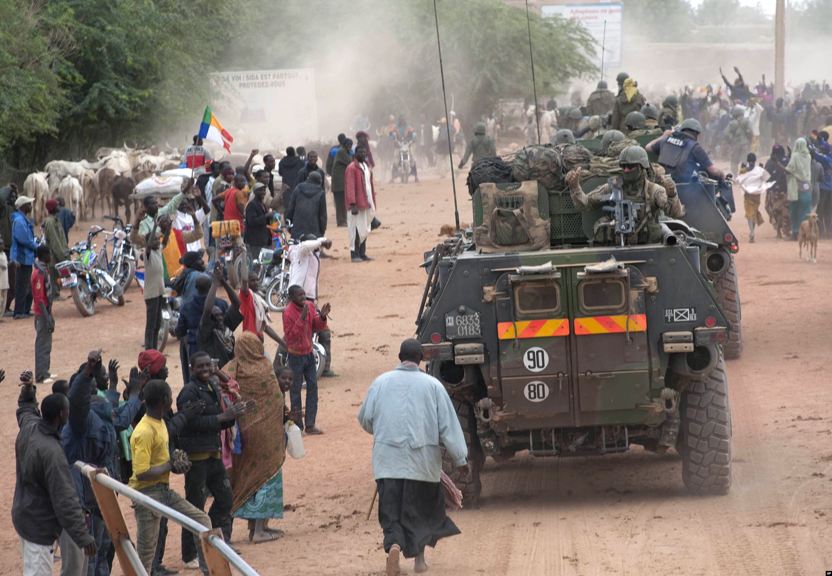 This photo released by the French Army Communications Audiovisual office shows a crowd cheering the arrival of French soldiers in Timbuktu, Mali, January 28, 2013.