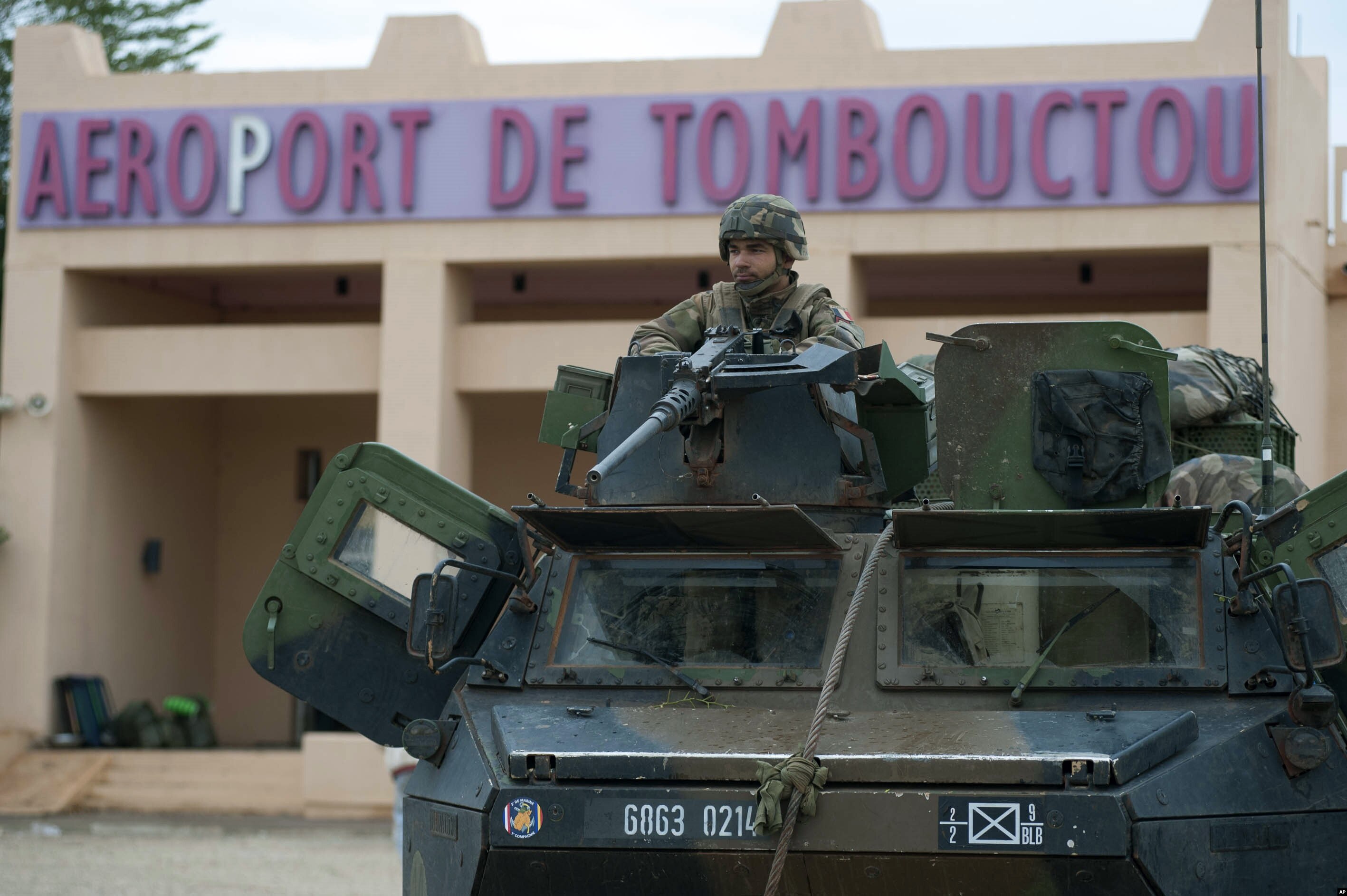This photo released by the French Army Communications Audiovisual office shows a French soldier guarding Timbuktu airport, Mali, January 28, 2013.